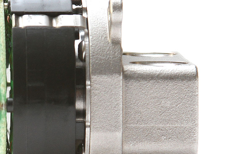 The 316L stainless steel casting allows for numerous port options at different orientations. Mounting holes are provided for easy integration into customer machines. Custom body designs can easily be provided for high volume OEM applications.