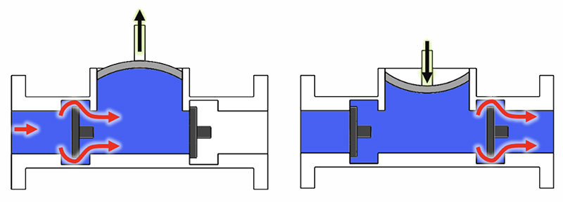 Reciprocating positive displacement pumps operate by repeated linear movement of a mechanism. The movement is often called a stroke, and the size of a pump is often specified as the volume per stroke. The flow profile is pulsed due to the once per revolution discharge of a reciprocating pump. If improperly implemented the pulsed flow may cause excessive vibration and/or damage to the hydraulic system, sometimes referred to as “water hammer”. The pulsed flow also causes peak flow rates higher than the average flow rate, requiring careful design of the hydraulic circuit. Reciprocating pumps are ideal for precise, repeatable fluid metering and dosing. The most common types of reciprocating pumps are: