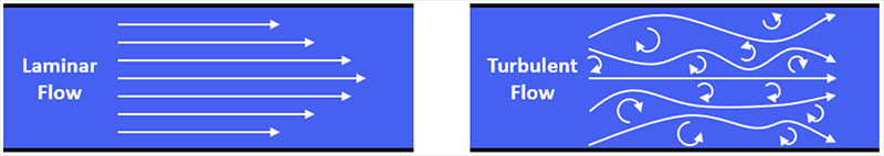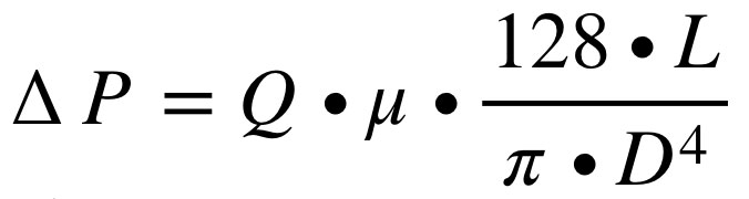 Note that the pressure drop is dependent on D4 therefore, doubling the inner diameter of the tube will decrease the pressure drop by a factor of 16! The above equation is for laminar flow only (Reynolds numbers < 2320). For turbulent flow the equation is more complicated and dependent on density instead of viscosity.